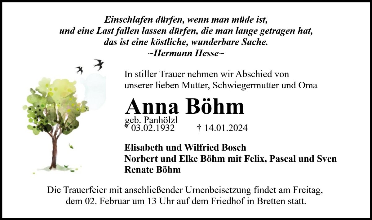 Anna Böhmgestorben am 14. Januar 2024