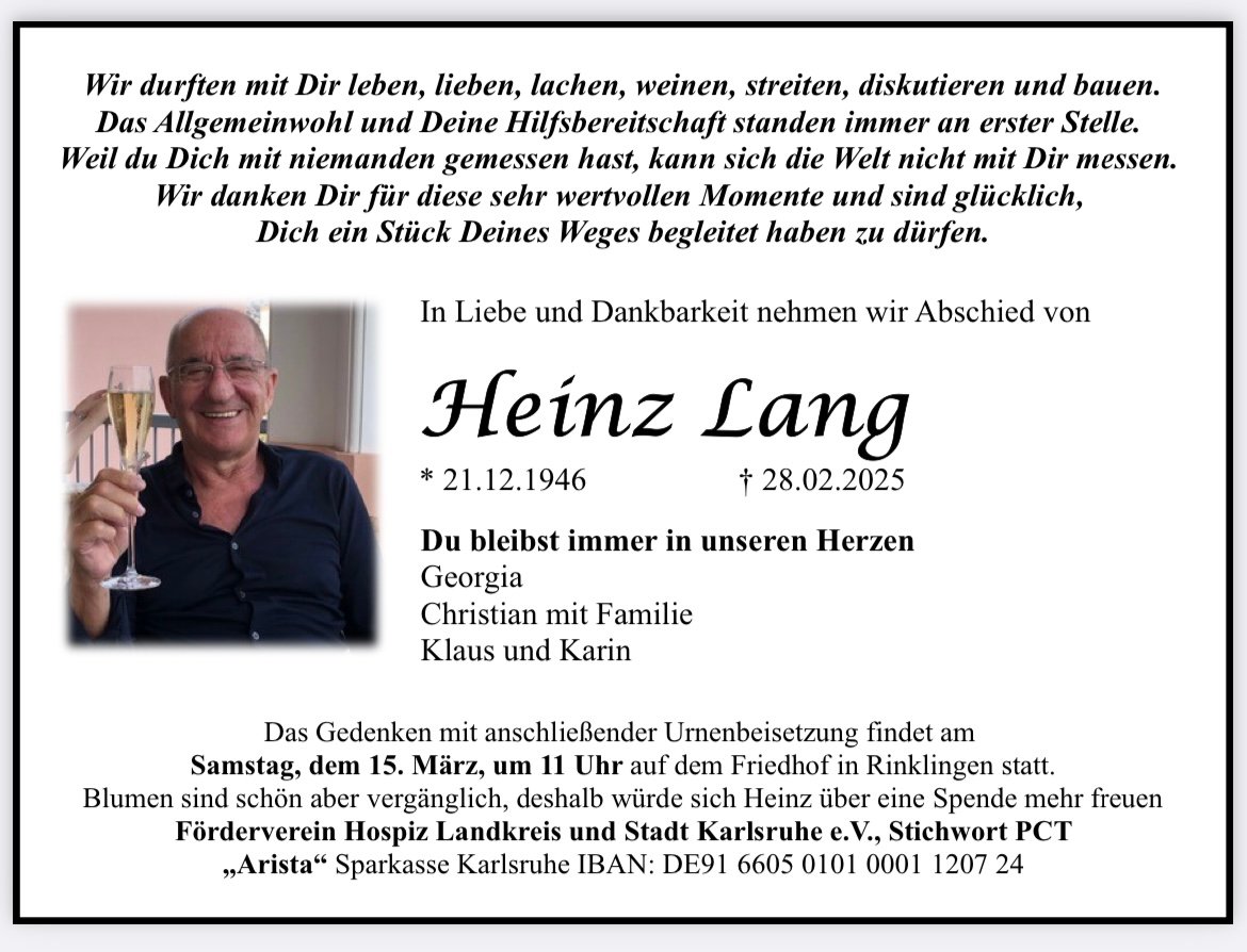 Lieber Heinz, liebe Angehörigen,