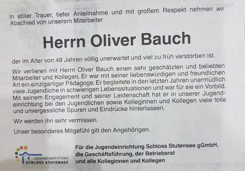 Oliver Bauchgestorben am 30. Mai 2020